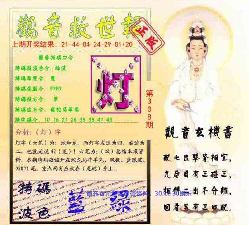 303期 三五又来自古无,二二三七同高歌。三千六万分头买,上下一心百业成。 解:三五又来自古无,三五又来解三岁兔,五岁牛,三十五岁羊,自古无解自古都没有见过的龙。二二三七同高歌,二二三七同,解二岁龙,二十二猴,三岁兔,七岁猪,高歌解鸣啼的鸡。三千六万分头买,三千六万解三岁兔,六岁鼠,三十六马。上下一心百业成,解皇帝龙 九肖:兔龙马鼠鸡猴羊牛狗 七肖:兔龙马鼠鸡猴羊 五肖:兔龙马鼠鸡 三肖:兔龙马 一肖:兔 |